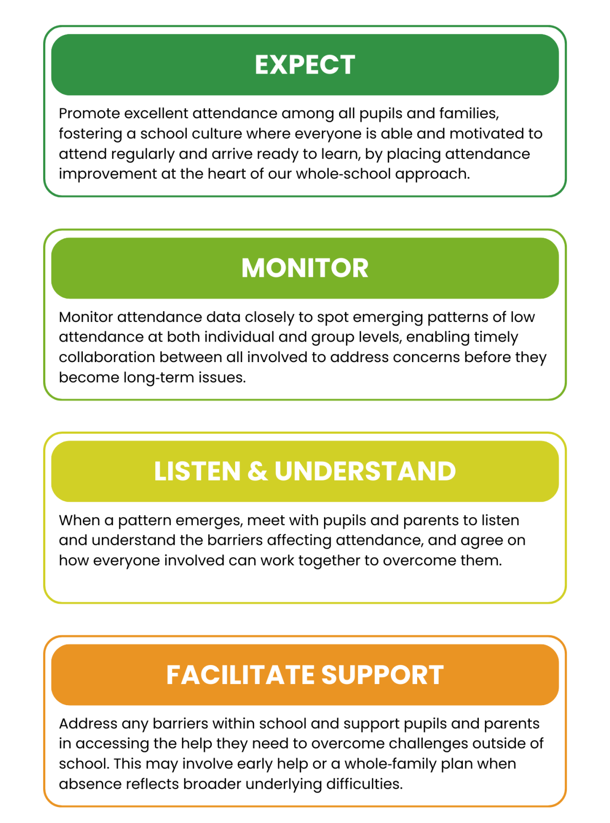 - being open and willing to work with us to improve your child’s attendance